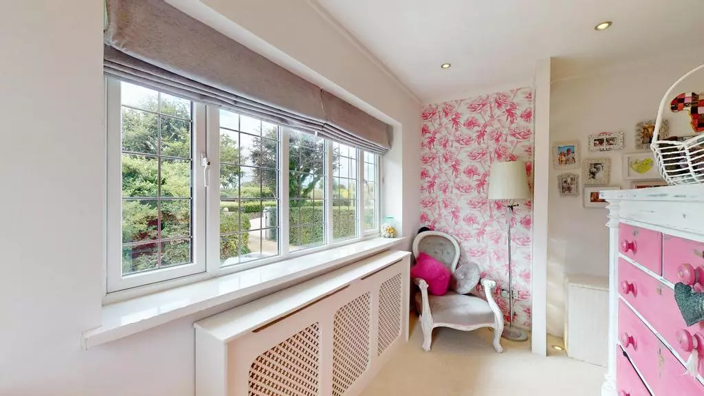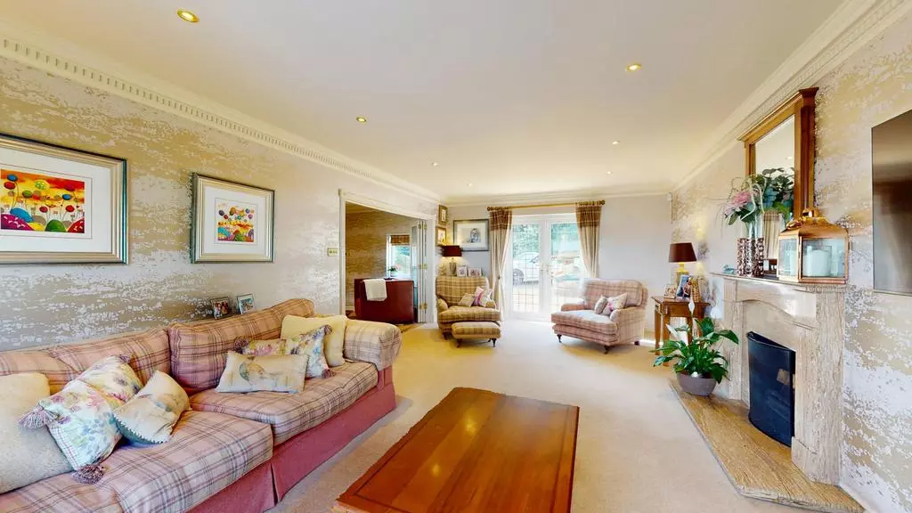 Presented to a high standard throughout, expressing our clients pride and pleasure in ownership over many years, the property provides excellent, well planned accommodation arranged over two floors which is ideal for a growing family. Immediately upon entering, interested applicants will appreciate the very pleasant and warm atmosphere that greets them in the spacious, square in shape Reception Hall, which also has space for comfortable seating. To the left, there are double doors revealing the Through Lounge which has a focal point provided by a lovely marble fire place incorporating an open fire and there are patio windows to both front and rear elevations affording excellent light and a view over the garden and paddock to the countryside beyond. On the opposite side of the Reception Hall there is a useful Study, ideal for home working, and with glazed double doors leading to the Living Area of the kitchen, it could also be used as a Snug. The very impressive Living-Dining Kitchen is a particular feature of this home and a contemporary space ideal for everyday family life as well as entertaining, incorporating a lovely relaxation area, with a log burning stove, to the front of the house where large, sliding patio windows open onto the front, southerly facing, private landscaped gardens - closed or open the windows provide a lovely "picture panel" outlook on to the garden! The kitchen is fitted with a luxury range of base cabinets with contrasting light granite working surfaces over, and an island of matching base cabinets and a matching light granite working surface, with an undermounted sink, separates the living space and the kitchen. With space for a range style gas and electric cooker, other integrated appliances include a dishwasher and a fridge, and there is attractive lighting at kick board level around the kitchen for added effect! Beyond the Kitchen peninsula there is a family size dining area with patio windows affording access and a view onto the rear gardens and the countryside beyond. There is the practical benefit of a Utility Room with access to outside and plumbing is provided for an automatic washing machine, space for a dryer beneath the working surface which incorporates a sink. A door from the Dining Area in the Kitchen leads back into the Reception Hall where there is a further door leading to the Downstairs Shower Room which is fitted with a three-piece white suite.