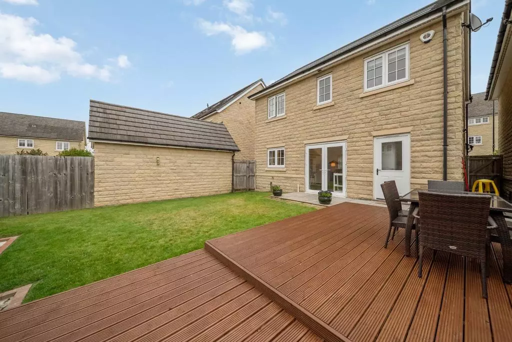 - Landscaped suntrap garden with patio, lawn, & decking.