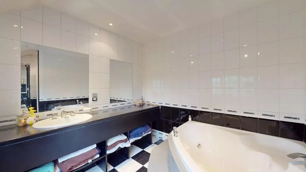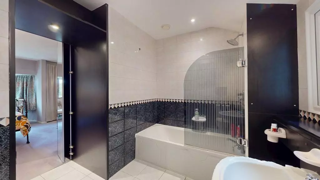 A half-turned staircase from the Reception Hall leads to the First Floor Landing where there are four double bedrooms, including a very good sized Master Bedroom which has a bay window to the front and mirror fronted floor to ceiling wardrobes to one wall which incorporate a secret door leading to an En-suite Bathroom. The En-suite is fully tiled and fitted with a white, four-piece suite comprising a panelled bath with shower over and screen, pedestal wash basin, low-suite WC and bidet, complemented by a tiled floor and window to the rear. The Family Bathroom is also fully tiled, with a tiled floor, and fitted with a three-piece white suite comprising a raised corner bath, vanity wash basin and a shower enclosure with a tiled interior, and there is a window to the front. Adjacent to the Bathroom, there is a Separate WC fitted with a low-suite WC and a vanity wash basin, complemented by a tiled floor and window to the front.